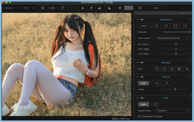 - اصلاح پرسپکتیو: یکی از ویژگیهای برجسته DxO ViewPoint، قابلیت اصلاح پرسپکتیو است. این نرمافزار به کاربران این امکان را میدهد تا انحرافات ناشی از لنزهای واید و عکاسی از زوایای غیرمعمول را به راحتی اصلاح کنند.